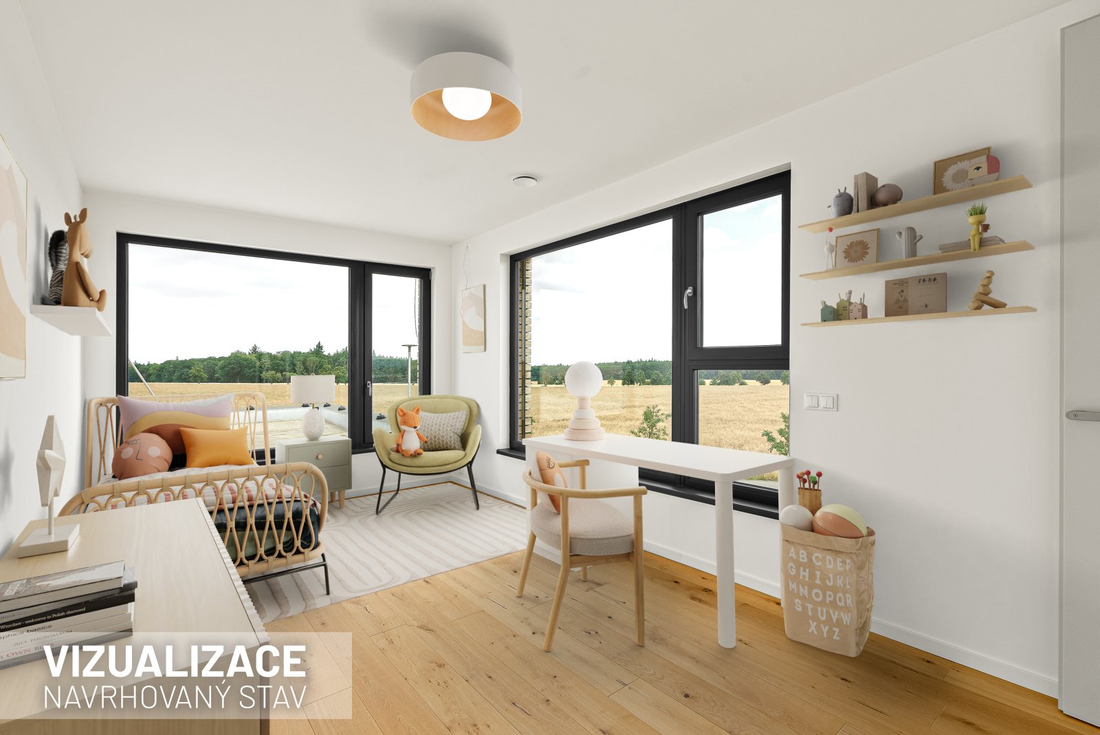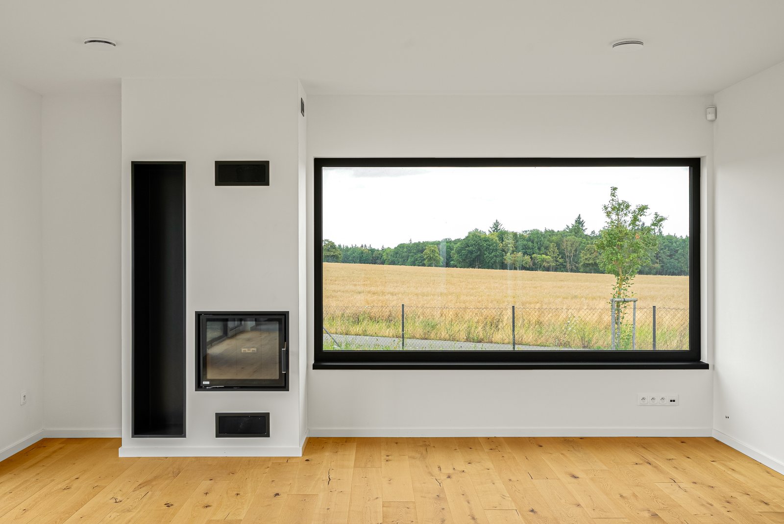 velkoformátovým oknem s trojskly. Výstup na zahradu je možný přímo