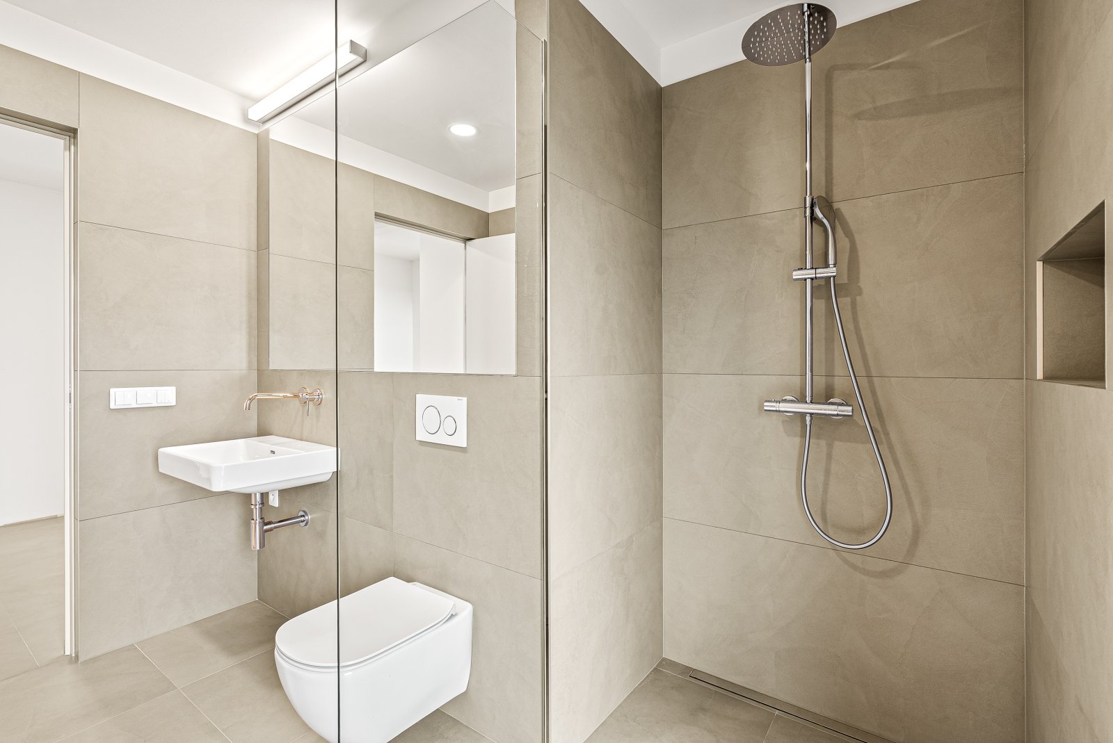 koupelna se sprchovým koutem a WC, technická místnost s místem pro pračku