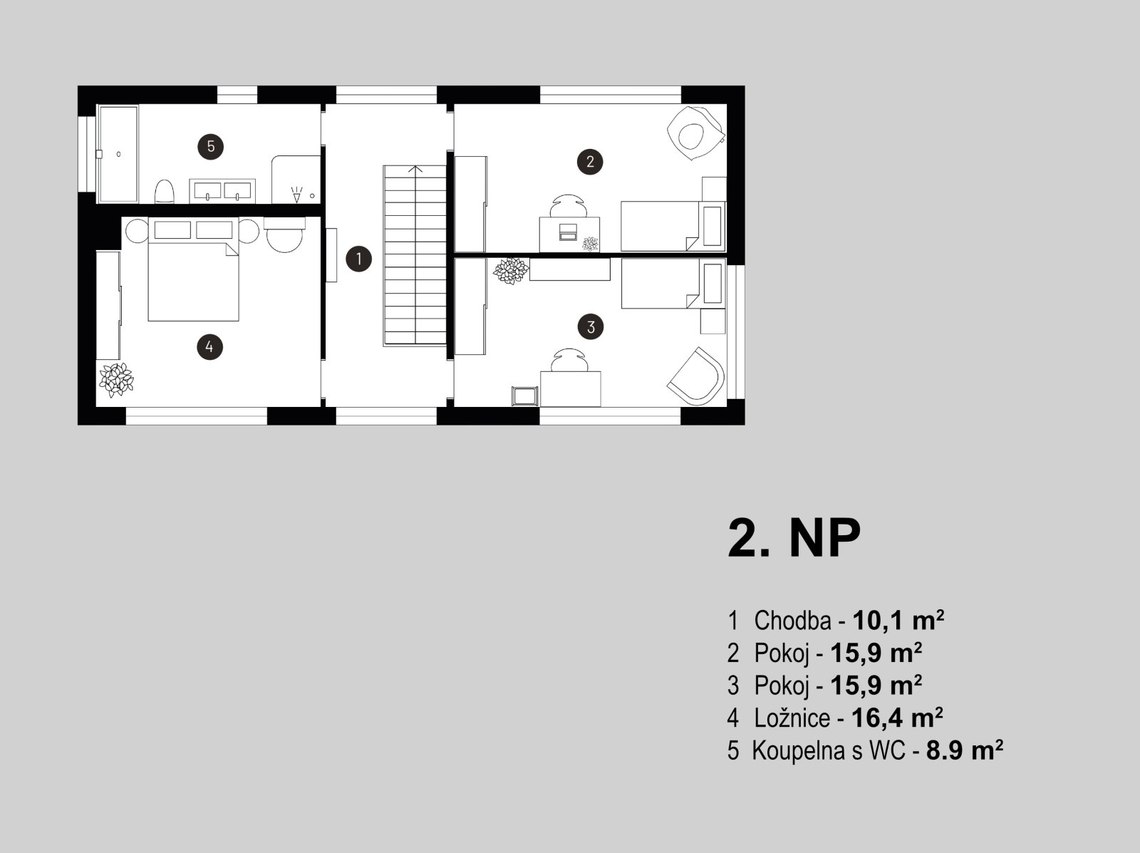 plocha 199 m2 zahrnuje i dvojgaráž 40 m2. Pozemek o výměře 809 m2 je