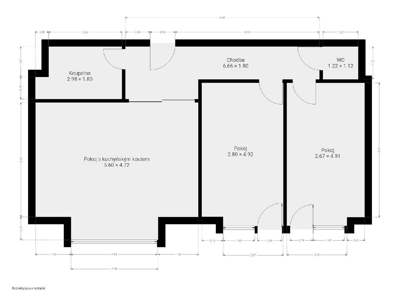 Tři samostatné neprůchozí pokoje přístupné z chodby dávají každému